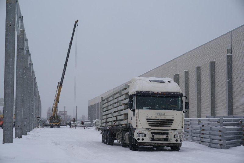 На текущий момент строительство идет по графику одновременно на нескольких площадках. Возведены стены и частично смонтирована кровля главного производственного корпуса. Ведется монтаж фундамента под ключевое технологическое оборудование. После завершения бетонирования пола специалисты приступят к прокладке внутренних инженерных коммуникаций.