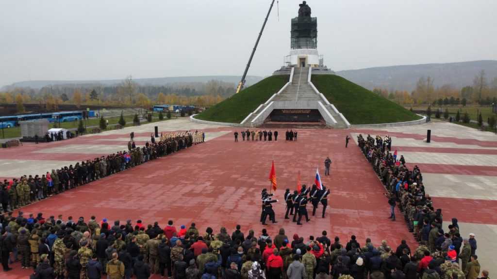 Губернатор Кузбасса Сергей Цивилев выступил с напутственным словом перед кузбассовцами, призванными на военную службу в рамках частичной мобилизации. Построение прошло у мемориального комплекса Героям-сибирякам.