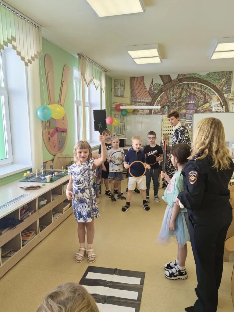 Ключевым этапом стал практический тренинг. На специально оборудованной локации инспектор наглядно продемонстрировал дошкольникам алгоритм перехода дороги. Дети вместе с наставником отработали правило «остановись — посмотри — убедись в безопасности», закрепив навыки в условиях, максимально приближенных к реальным.