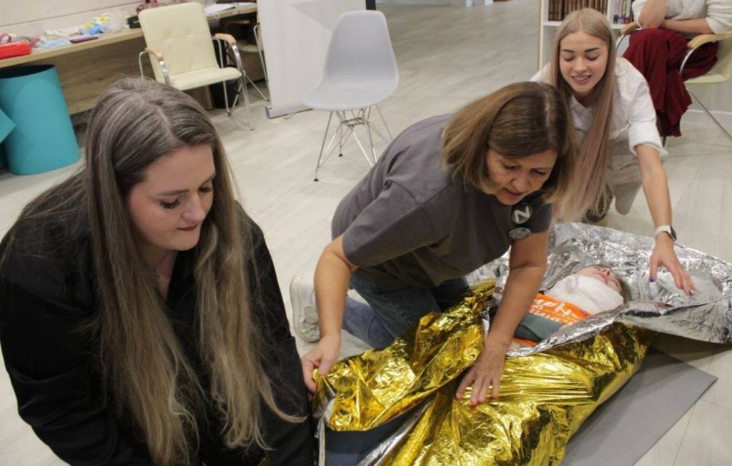 Мастер-класс провела преподаватель Кузбасского медицинского колледжа, мама героя СВО Елена Лукьянова. Она рассказала, как проводить сердечно-легочную реанимацию и останавливать кровотечения, показала, как накладывать повязки. Также дала советы по обновлению аптечек первой помощи.